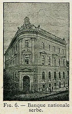 ![]() 1896 illustration depicting the National Bank Building, Belgrade before its expansion in 1922-1925 | |