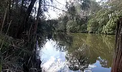 The creek offers 8 km (5.0 mi) of recreational area and winds through a number of parks and reserves, including walkways and cycling paths that parallel the creek.[3] As Prospect Reservoir forms a part of the Sydney metropolitan water supply, the flow of the creek is regulated in accordance with the operational requirements of Sydney Water. The catchment area of the creek is approximately 98 square kilometres (38 sq mi), and is largely urbanised with industrial land uses, residential and open space for recreation.[2] For the early British settlers, the creek and the surrounding offered essential food and water resources, and thereby encouraged the development of local agriculture and industry.[3] The creek becomes affected by tides in the south.[4]