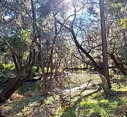 The creek's strip, being located between urban and industrial area, is a green natural corridor used for recreation purposes and ecological conservation, in addition to the environment having indigenous significance. The creek consists of remnant and altered vegetation communities, artificial and natural wetlands, grassy open areas and as well as detention basins. Its riparian vegetation is rather diverse and often compact, which consists of around 125 native and 96 introduced species. The creek features remnant vegetation ecozones such as Coastal Swamp Oak Forest, River-flat eucalypt forest and Shale-Gravel Transition Forest, with the first two being the most prominent zones.[3]