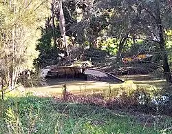 From 1925, the Widemere Quarry Line crossed the creek until its closure in 1945.[19] Between the 1890s to around 1941, the creek became a popular weekend recreation area, and boating was common among visitors, who came to the picnic zones and hired boats there at Latty's Boatshed in what is now Heiden Park at Carramar.[20] Though with the advent of the Second World War in the early 1940s, access to the creek became restricted for visitors due to warfare security measures. Moreover, at that time, the part of the creek from Vine Street at Fairfield to its confluence with Georges River was commonly referred to as the 'George River' due to its watercraft navigability and wideness.[21] That section of the creek was also referred to as "Prospect River" and "Fairfield's River" by the locals.[22]