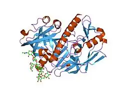 - ^ Groves MR, Taylor MA, Scott M, Cummings NJ, Pickersgill RW, Jenkins JA (October 1996). "The prosequence of procaricain forms an alpha-helical domain that prevents access to the substrate-binding cleft". Structure. 4 (10): 1193–203. doi:10.1016/s0969-2126(96)00127-x. PMID 8939744.