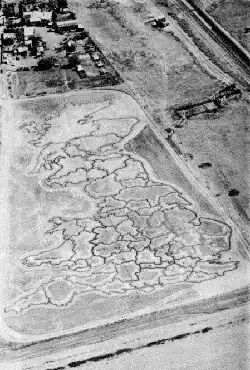 A 1979 aerial photograph, facing north, of the Province of Bumbunga showing the gigantic strawberry patch shaped like Great Britain | |