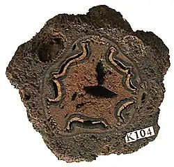 A transverse section through a Psaronius stem. ~12cm across. | |