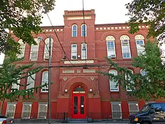 Public School 65K is a historic school building located in Cypress Hills, Brooklyn, New York, New York. It was originally built in 1870 and significantly expanded in 1889 to designs by James W. Naughton. It is a two-story, brick building on a stone base in the Romanesque Revival style. It features a slightly projecting central tower and terra cotta decorative details.[2]