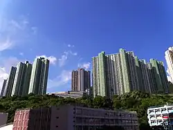 Lam Tin is the hill area at the southeast of Kwun Tong District.[1] There was a resettlement estate in the area called the Lam Tin Resettlement Estate (Chinese: 藍田徙置區) in the 1960s.[2]