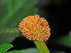 These fungi are endoparasites plant pathogens mainly infecting species in the families of Balsaminaceae, Boraginaceae, Hydrophyllaceae, Ranunculaceae and Poaceae (especially wheat and rye).[43] Puccinia recondita was also found to cause 'brown rust' in wheat and triticale (hybrid of wheat and rye). Symptoms of infestation are yellowish to brown spots and pustules on the leaf surfaces of the host plants.[44] Brown rust is the most widespread and prevalent disease of wheat in South America,[45] and is the most important wheat disease in Mexico.[46]