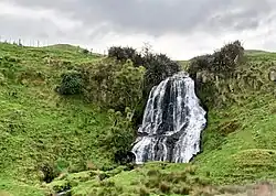 A 21 mi (34 km) branch line[14] down the Mokau valley to Piopio and Aria was surveyed, but rejected in a ballot (under the 1914 Local Railways Act) in 1922.[15] A 10 mi (16 km) extension south to a coal seam at Waitewhena was also considered.[16] From 1933 that mine was served via Ohura on the Stratford–Okahukura Line.[17]