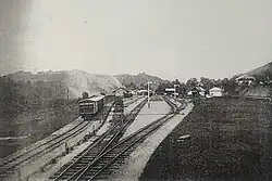 The station began operations on 15 July 1905 when construction of the West Coast Line reached Tampin from Seremban.[2][3][4][5][a] Later on 1 December 1905, the 34-kilometre (21 mi) Tampin-Malacca Line was opened.[6] The main trunk line to Gemas was only opened about a year later on 1 October 1906. The Tampin-Malacca Line was later dismantled by the Japanese in World War II, with the dismantled tracks transported to Thailand and Myanmar to build the infamous Thai-Burma Death Railway.[7][8][9]