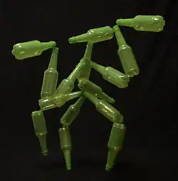 A push puppet consists of a segmented character on a base which is kept under tension until the button on the bottom is pressed. The puppet wiggles, slumps and then collapses. Push puppets are usually intended as novelty toys, rather than as part of professional puppet theatre.