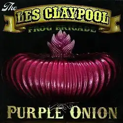 Purple Onion is the debut studio album by The Les Claypool Frog Brigade, released on September 24, 2002. It followed two live releases by the band, and is the first release of the Frog Brigade's original compositions. While the Brigade regulars are consistent on much of the record such as Jay Lane, Eenor Wildeboar, Skerik and new percussionist Mike "Tree Frog" Dillon, many special guests appear on the album as well. Guests on multiple tracks include Ben Barnes and Sam Bass (then both from Deadweight). "D's Diner," a tribute to a Sebastopol, California restaurant, features sitar player Gabby La La in addition to the triple-bass onslaught of Claypool, Norwood Fisher (Fishbone) and Lonnie Marshall (Weapon of Choice). Warren Haynes (Allman Brothers Band) adds slide guitar on the "Buzzards of Green Hill" and Fish Fisher (Fishbone drummer) guests on "Whamola." "Whamola" was a live show staple named after the unique instrument Les employs—a one-string bass played with a drumstick. The song later appeared as a remix for the theme of South Park Season 10. "Barrington Hall" is a tribute to the UC Berkeley student housing known in the 1960s-1980s for counterculture. Purple Onion was released on vinyl for the first time on November 24, 2009.