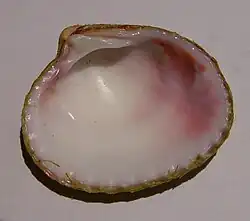 Purpurocardia purpurata is a marine bivalve mollusc in the family Carditidae. Its genus was long included in Venericardia, but is increasingly treated as distinct.