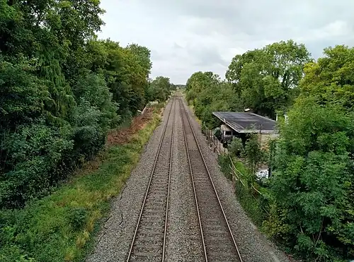 The Cheltenham and Great Western Union Railway through Purton parish was opened in 1841 and was absorbed by the Great Western Railway in 1843. Purton station opened when services began in 1841, in the hamlet of Widham, about 700 metres north of Purton village at the bridge over the Purton-Cricklade road. British Railways closed the station in 1964 but the line remains open. The booking office building survives with a small part of its platform.[1]