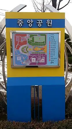 - ^ "중앙공원 : HOME > 문화/관광/체육 > 산/공원 > 공원 > 근린공원 > 중앙공원". www.anyang.go.kr. Archived from the original on 2015-09-23.
