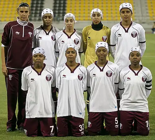 The Qatar women's national football team (Arabic: منتخب قطر لكرة القدم للسيدات) represents Qatar in international women's football, and is controlled by the Qatar Football Association (QFA). The team has been inactive since 2014[2] and currently unranked in the FIFA world ranking.[3][4]