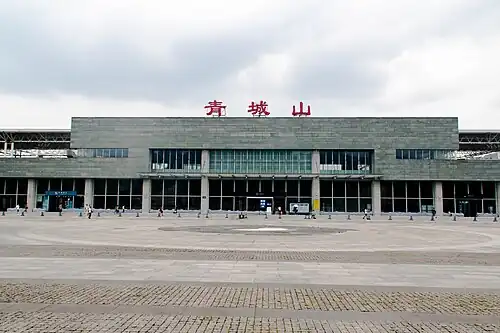Qingchengshan railway station (Chinese: 青城山站; pinyin: Qīngchéngshān Zhàn; lit. 'Mount Qingcheng railway station') is a railway station of Chengdu–Dujiangyan Intercity Railway. The station located in Dujiangyan, Chengdu, Sichuan, China.