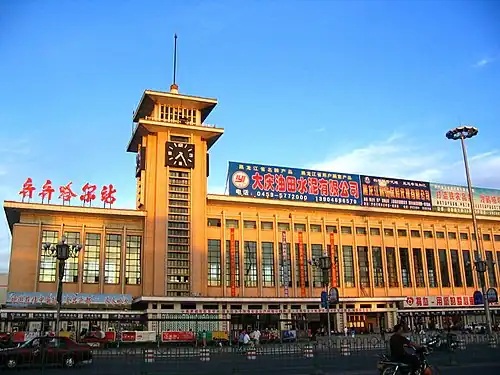 Qiqihar station (simplified Chinese: 齐齐哈尔站; traditional Chinese: 齊齊哈爾站; pinyin: Qiqihar Zhàn) is a railway station of the Harbin–Qiqihar intercity railway, Siping-Qiqihar Railway and Qiqihar–Bei'an Railway. The station is located in the town of Qiqihar, Heilongjiang, China.