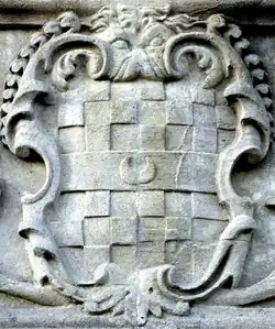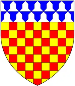 Chichester: Chequy or and gules, a chief vair, for Sir Arthur Chichester, 3rd Baronet (d.1718), of Youlston Park, Shirwell, thrice MP for Barnstaple (1685–87, 1689–90, 1713-18[59]), who in 1689 sold his family's ancient seat of Raleigh, Pilton, close to Barnstaple, to Arthur Champneys who succeeded him as MP, and built Youlston Park. The owners of the estate of Raleigh exerted much control over the electorate of Barnstaple.[60] The family was in the 17th century lord of the manor of Barnstaple Castle (or "Castle Court").[61] His daughter Susanna Chichester was the second wife of Henry Incledon.[62] The Chichester baronets survive today but have lost any connection with North Devon. A living descendant of this branch of the family is Giles Chichester (born 1946) a former Conservative Party Member of the European Parliament for South West England and Gibraltar, son of the famous yachtsman Sir Francis Chichester, a grandson of the 8th baronet. |