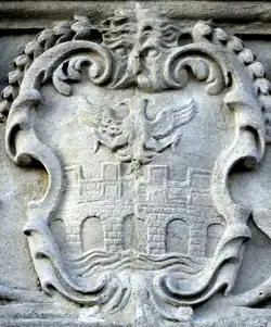 Sculpted escutcheon | Arms with tinctures | Full view | ||