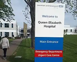 ![]() Sign at main entrance Queen Elizabeth Hospital | |