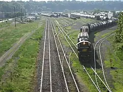 Queen Street is a Lower City arterial road in Hamilton, Ontario, Canada. It starts off at Beckett Drive, a mountain-access road in the city and is a two-way street up to King Street West and a one-way street (southbound) the rest of the way north up to the Canadian National Railway Yard, where the road turns right, merging with Stuart Street which travels in a west–east direction.