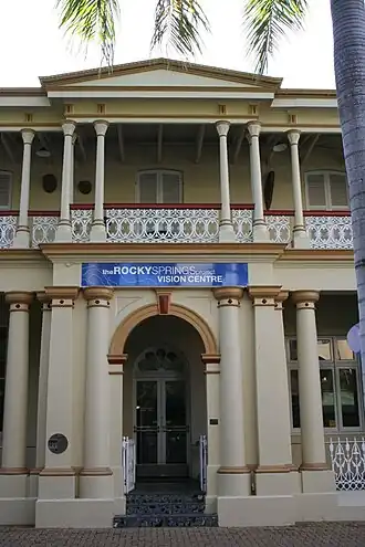 The former Queensland National Bank, erected in 1878–1879, is a characteristic 1870s regional bank building adapted to a tropical climate, and is one of the few remaining 1870s buildings in Townsville.[1]