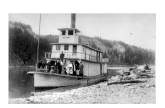 Originally named City of Quesnel, she was truly a home town product: owned by Telesphore Marion, a local merchant, built by local carpenter, John Strand and piloted by local man, Captain Donald Arthur Foster. However, on her launch day, it was discovered that she rode too low in the water and that her hull needed to be lengthened. Shipbuilder Donald McPhee was already in town, having just completed the construction of another sternwheeler, the Nechacco. McPhee was hired to do the work and City of Quesnel was rebuilt and relaunched under the name Quesnel on September 2.[2]