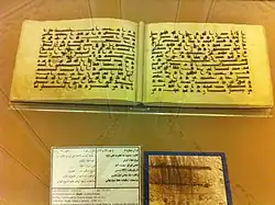 ![]() Two folios of the Birmingham Quran manuscript, an early manuscript written in Hijazi script on parchment carbon-dated to c. 568–645, overlapping Muhammad's lifetime | |