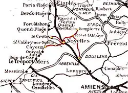 Forest-l'Abbaye was where the line from Noyelles joined the line between Abbeville and Dompierre-sur-Authie. It was 11 kilometres (6.8 mi) from Noyelles.