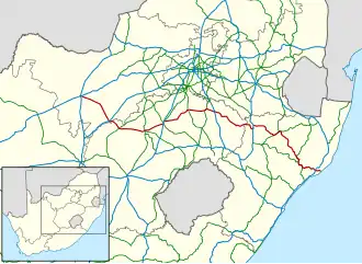1. ^ a b c d e f g h i j k l m n o Falkner, John (May 2012). South African Numbered Route Description and Destination Analysis (Report). National Department of Transport. pp. 43โ€“44. Archived from the original on 6 June 2014. Retrieved 12 August 2014.