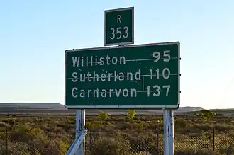 The R353 is a Regional Route in South Africa that connects Leeu-Gamka with Brandvlei via Fraserburg and Williston.[1]