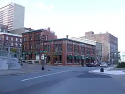 The original six buildings occupy a downtown block facing the Halifax waterfront bounded by Upper Water Street, Duke Street, Hollis Street and the Cogswell Interchange. Along with the adjacent waterfront buildings of Historic Properties and the Victorian commercial buildings of the Granville Mall, the site is one of the only intact blocks of 19th-century buildings in Downtown Halifax. It includes the oldest storefront in Halifax and the site of the famous 18th-century tavern “The Great Pontack”, where James Wolfe planned the siege of Louisbourg and Quebec. The buildings have housed commercial and retail tenants, but Armour group has said that the buildings are no longer economical and their replacements by facades should be seen as restoration.[1] The buildings on the block include the 1820 Harrington MacDonald-Briggs Building the oldest remaining commercial building in Halifax,[2] the 1861 Fishwick & Company Building,[3] the 1926 Imperial Oil Building[4] as well as the 1840 Sweet Basil Building, the last wooden "sailortown" building on Halifax's Water Street.
