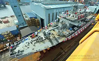 ROKS Gwangyang was launched on 30 June 2015 by Hanjin Heavy Industries and commissioned on 10 October 2016.[2]