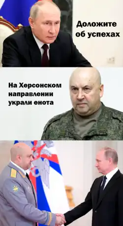 On November 13, Oleksandr Todorchuk, founder of the Ukrainian animal welfare organization UAnimals, announced that the Russian command had stolen the raccoon from the Kherson Zoo, confirming the account that the animals had been taken to Crimea.[9][10] Dolgareva later denied that the theft had taken place. In turn, a screenshot of her original post went viral on the social networking site Twitter, leading to numerous memes and jokes about the raccoon being created.[5]