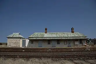 The station building is a type 9, non-standard timber building with brackets and a tin roof.[1][7]