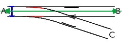 - B – 613 feet (186.84 m) – simple crossover with a 1 in 8 crossing angle