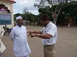 Raje has supported Anna Hazare's anti-corruption movement[31] and was one of the prominent members to fight for the Jan Lokpal Bill along with Hazare at a local level.[1][32]