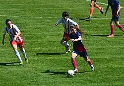 In November 2012, she moved together with her fellow countrywoman Cosmina Dușa to Turkey to join Konak Belediyespor in Izmir, which played in the First league.[2] She inspired her team to win five consecutive championship titles (2012 and 2017). During this time she helped her team reach the UEFA Women's Champions League quarter finals. Sârghe took part in six matches of the 2013–14 UEFA Women's Champions League, in three matches of the 2014–15 UEFA Women's Champions League qualifying round and three matches of the 2016–17 UEFA Women's Champions League qualifying round, and scored two goals in total.[5][6] At the 2017–18 UEFA Women's Champions League qualifying round in Tbilisi, Georgia, she played in two of the three matches for her team.[7][8]