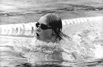 Ramona Reinke is a retired German swimmer who won a silver medal in the 4 × 100 m medley relay at the 1978 World Aquatics Championships and a bronze medal in the 100 m breaststroke at the 1977 European Aquatics Championships.[2] Between 1977 and 1978 she won three national titles in the 100 m and 200 m breaststroke.[1]