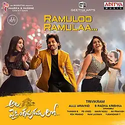 "Ramuloo Ramulaa" is an Indian Telugu-language song composed by S. Thaman for the soundtrack of the 2020 action-drama film Ala Vaikunthapurramuloo sung by Anurag Kulkarni and Mangli and penned by Kasarla Shyam.[1] The song's official lyrical version was released on 25 October 2019,[2] while the full video song was released on 28 February 2020 under the music label Aditya Music.