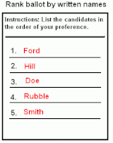 Ranked voting systems of the instant-runoff voting type and the Borda count type are contrasted with rated voting methods, which allow voters to indicate how strongly they support different candidates (e.g. on a scale from 0 to 10).[1] Ranked vote systems produce more information than X voting systems such as first-past-the-post voting. Rated voting systems produce more information than ordinal ballots; as a result, some common results like Arrow's theorem do not directly apply to them.[2]