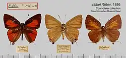 Rapala ribbei is a butterfly in the family Lycaenidae. It was described by Julius Röber in 1886. It is endemic to Sulawesi.[2] The name honours Carl Ribbe.