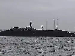 In August 2016, a polyester copy of the statue of the Swiss freedom fighter William Tell was erected on the island for the 725th Swiss National Day. The original is located in Altdorf, Uri, Switzerland.[4] In March 2017, Schibli was sued unsuccessfully in a People's Court episode for fees charged by an engineer whom he asked to give an estimate on what was needed to put a more permanent statue of William Tell on the island.[7]