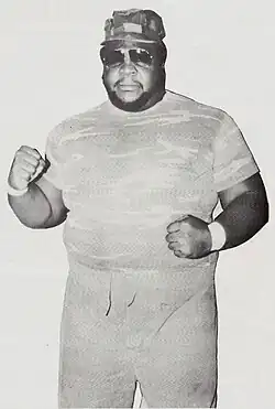 He later formed a duo with Ed Gantner, known as the Shock Troops, working for the CWF.[3] On November 25, 1986, Canty, while still working as Kareem Muhammad, defeated Barry Windham to win the NWA Florida Heavyweight Championship, holding it until December 2 where he lost it to Ron Simmons.[17] He later teamed up with Hacksaw Higgins to win the NWA United States Tag Team Championship, although the duo only held it for a day.[13] In late 1986 Candy worked a tour with New Japan Pro-Wrestling under the ring name "Super Mario Man", a moniker that seemed more appropriate for an Italian plumber than a 6 ft 5 in (1.96 m), 410 lb (190 kg) African American wrestler.[1][18] In 1987 he travelled to Puerto Rico, working for the World Wrestling Council (WWC) where he won the WWC Puerto Rico Heavyweight Championship on June 6from Mighty Igor, holding it for about six months before losing it to Miguel Perez, Jr.[19] In 1988 he took the ring name "Commando Ray", teaming with "Commando Boone" (AKA Grizzly Boone) to for a team known as "The Commandos.[3] Candy's last major match was at the 1988 Starrcade, where he was a part of a Bunkhouse Battle royal, a match that was only seen by the audience in the Norfolk Scope.[20]