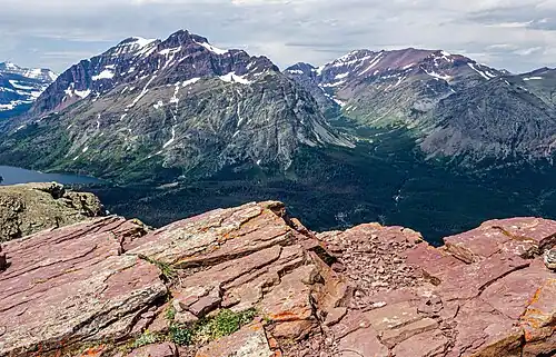 Like other mountains in Glacier National Park, it is composed of sedimentary rock laid down during the Precambrian to Jurassic periods. Formed in shallow seas, this sedimentary rock was initially uplifted beginning 170 million years ago when the Lewis Overthrust fault pushed an enormous slab of precambrian rocks 3 mi (4.8 km) thick, 50 miles (80 km) wide and 160 miles (260 km) long over younger rock of the cretaceous period.[6]