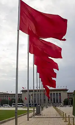 During the Chinese Civil War (1927–1949), the flag of the Chinese Communist Party became a red flag with a hammer and sickle, while the flag of the People's Republic of China became a red flag with a large star symbolising the party and four smaller stars symbolising workers, peasants, the urban middle class, and rural middle class, respectively.[22] During the Cold War, many communist states, such as Vietnam, also adopted red flags,[23] while others, such as Cuba, chose to keep their previous flags.[24] Red national flags with symbolism unrelated to socialism have also been adopted; the red flag of Nepal, for instance, represents its national flower.