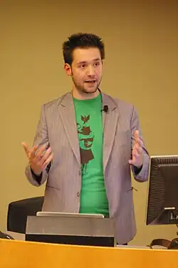 The idea and initial development of Reddit originated with college roommates Steve Huffman and Alexis Ohanian in 2005, who attended a lecture by programmer-entrepreneur Paul Graham in Boston during their spring break from University of Virginia.[17][18][19] After speaking with Huffman and Ohanian following the lecture, Graham invited the two to apply to his startup incubator Y Combinator.[17] Their initial idea, My Mobile Menu, was unsuccessful,[20][21] and was intended to allow users to order food by SMS text messaging.[17][18] During a brainstorming session to pitch another startup, the idea was created for what Graham called the "front page of the Internet".[21] For that idea, Huffman and Ohanian were accepted in Y Combinator's first class.[17][18] Supported by the funding from Y Combinator,[22] Huffman coded the site in Common Lisp[23] and together with Ohanian launched Reddit in June 2005.[24][25] Embarrassed by an empty-looking site, the founders created hundreds of fake users for their posts to make it look more populated.[26]