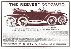 Marshal Reeves was the inventor of a two horse tongueless corn plow in 1869. In 1875 together with his father and uncle formed the Hoosier Boy Cultivator Company. In 1879, the company name was changed to Reeves & Company (abbreviated Reeves & Co.).[1] Reeves went on to design and manufacture threshers, straw stackers, separators, corn shellers and clover hullers, holding more than 50 patents for the same. At the same time as Marshal Reeves' brother Milton began making automobiles, in 1895, Reeves & Co. went into the steam engine business. They made engines in sizes from 13 HP to 40 HP (Nominal Horsepower).[2]