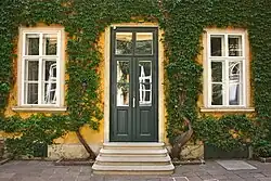 The entrance from Dorotheergasse into the inner courtyard features coffered wall pillars and a barrel vault. The ground floor houses the parish hall, the sexton's apartment, and the sacristy. The first floor contains offices for the parish and the church as a whole. There is an exposed door frame here, which is a remnant of the royal monastery from the end of the 16th century. On the second floor, there is a vicar's apartment. The attic of the rectory dates from the end of the 18th century. The rectory has a two-storey deep cellar. Two street-facing rooms in the lower basement feature cross-ridge vaulting and stitch-cap barrel vaulting, the ridges of which are heavily plastered.[19]