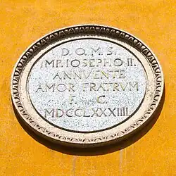 The foundation stone for the Tolerance Prayer House was laid on 26 March 1783. In accordance with the provisions of the Tolerance Patent, the building was required to be indistinguishable as a church from the outside and lacked a street-side entrance. As a result, architect Gottlieb Nigelli designed the street façade to resemble a simple residential building, with the two main portals concealed within an inner courtyard not visible from the alley.[3] The interior was designed in a Classicist style, which was considered progressive for its time.[5] The house of prayer was consecrated on 25 December 1784.[3]