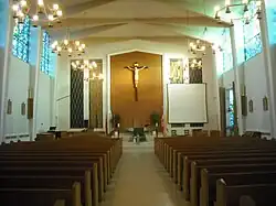 The chapel at Regina Mundi is located on the first floor of the Central Section, and is visible as soon as one walks into the main entrance of the building. The chapel is the largest of all Catholic Secondary Schools in the LDCSB, owing to the history of the school as a Junior Seminary.